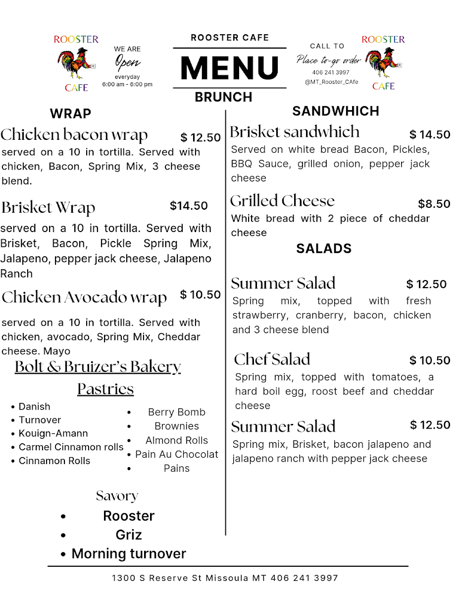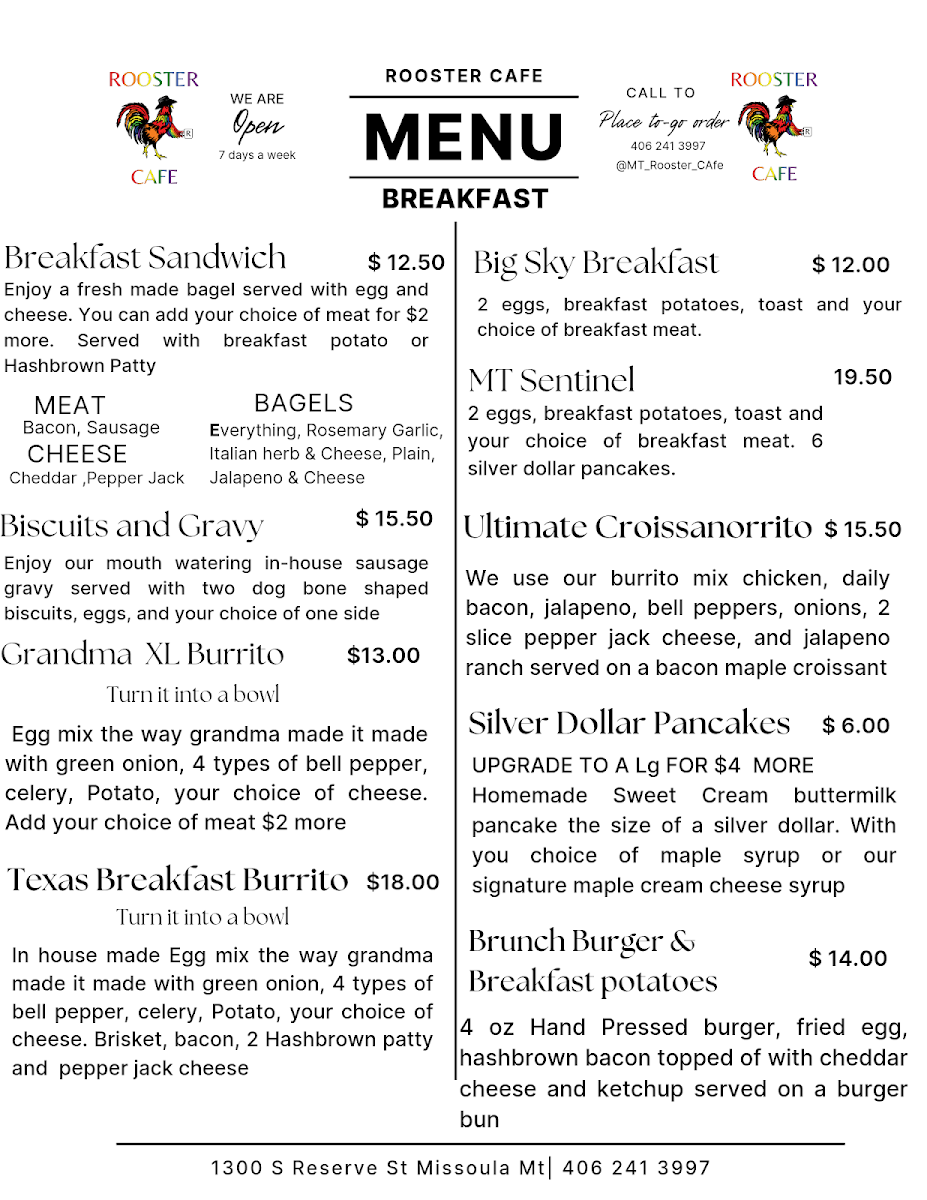 If you're looking for a hidden gem in Missoula that serves not only delicious food but also offers a warm, welcoming atmosphere, look no further than the quaint and charming Rooster Café. Nestled at 1300 S Reserve St A, this café is more than just a place to grab a cup of coffee; it's a community hub where locals gather to savor tasty treats and engage in vibrant conversations.